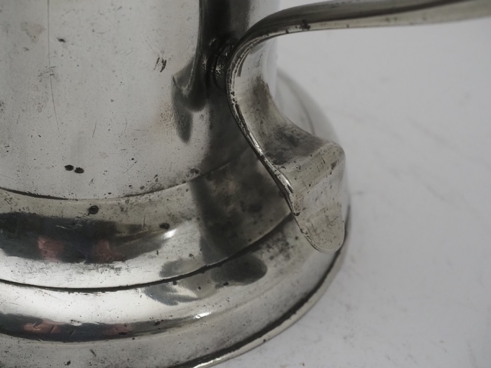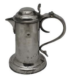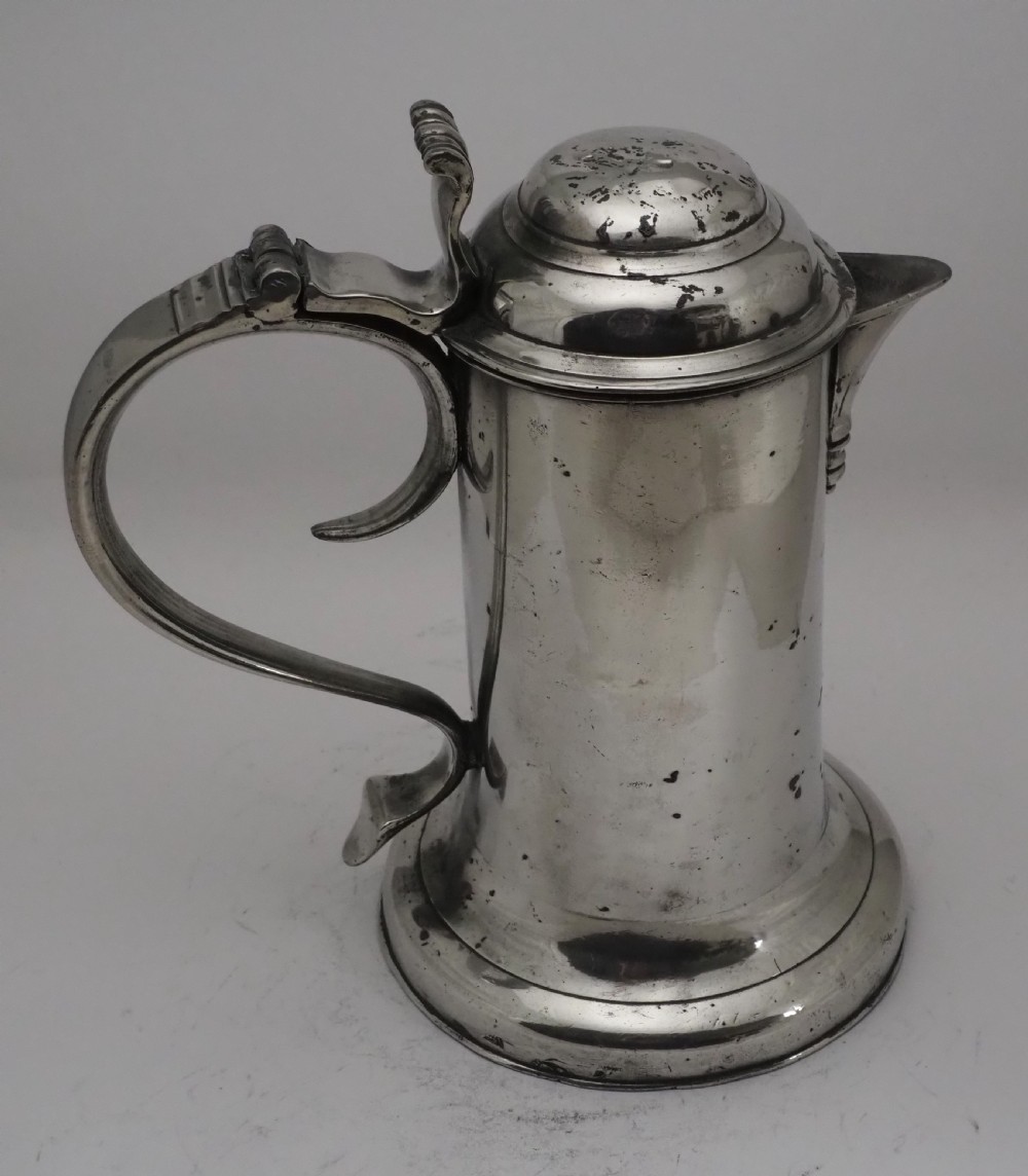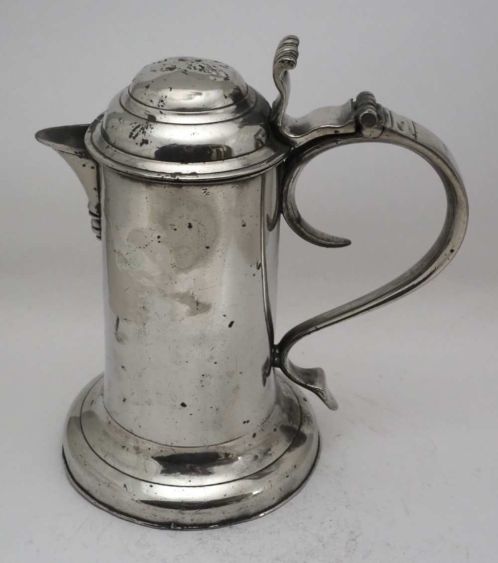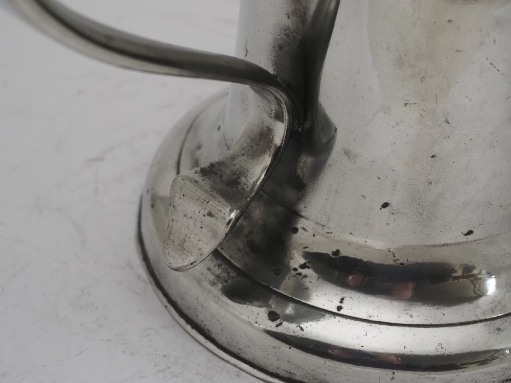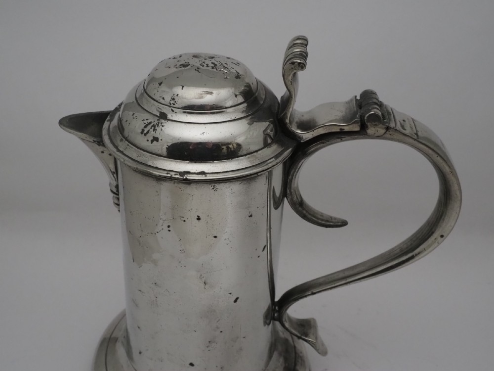 ANTIQUE IRISH PEWTER CHURCH FLAGON PROBABLY BY JOHN HEANEY OF DUBLIN, 1763 - 1807.