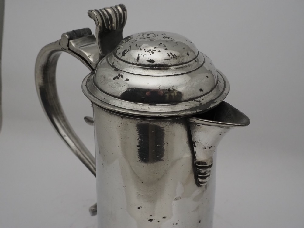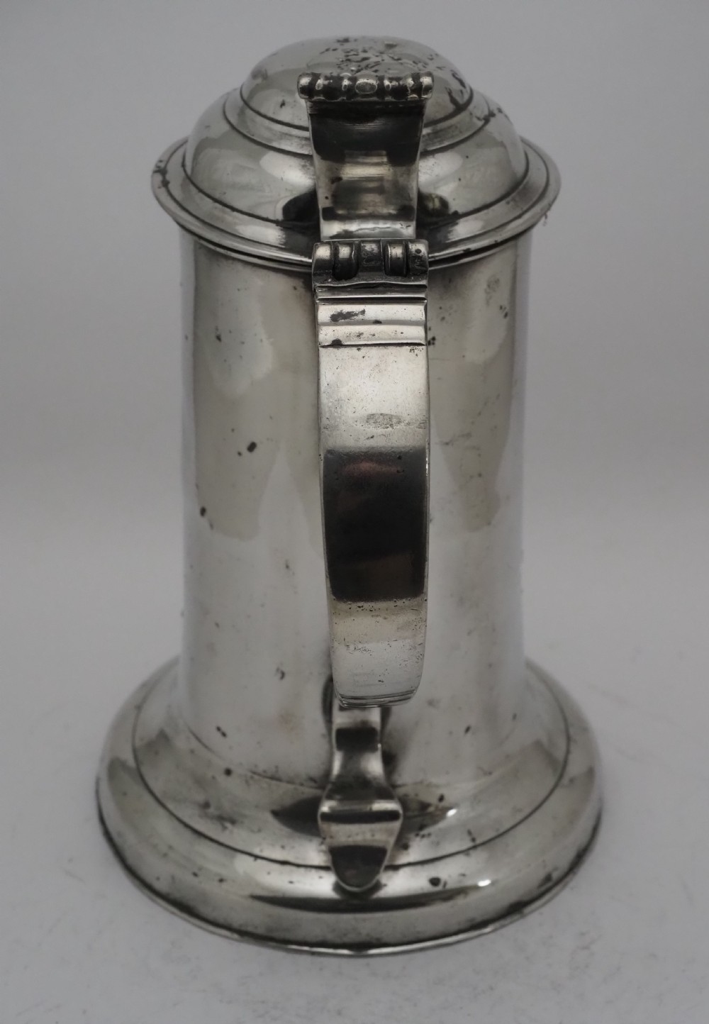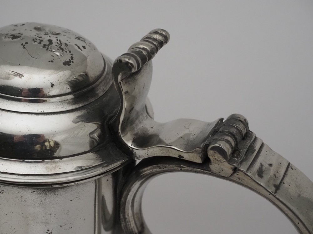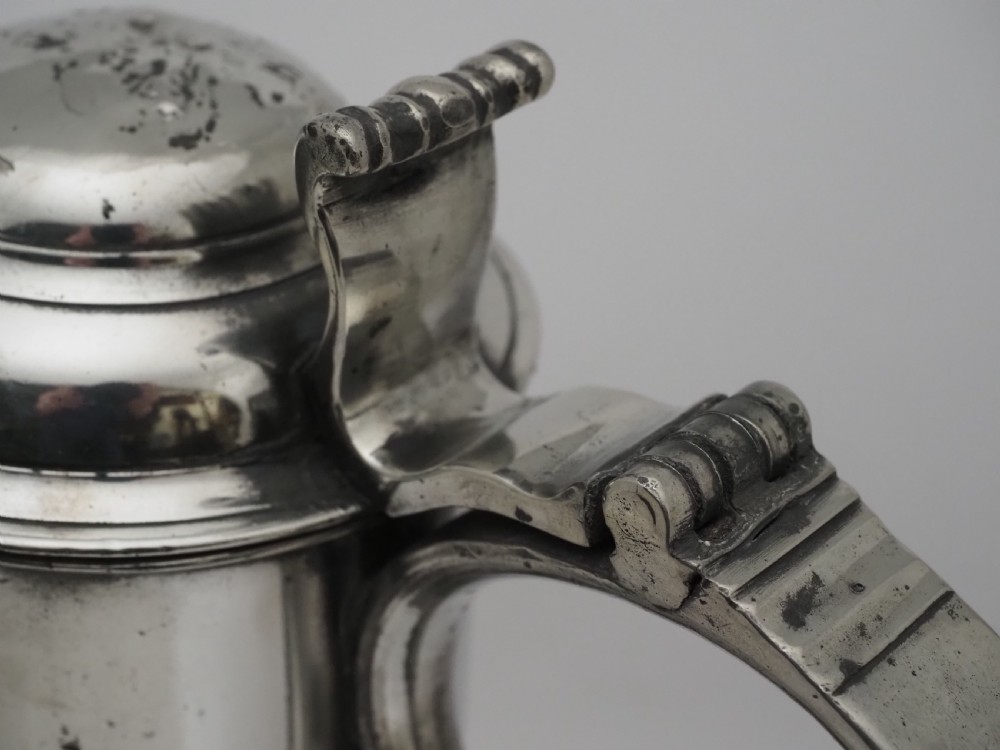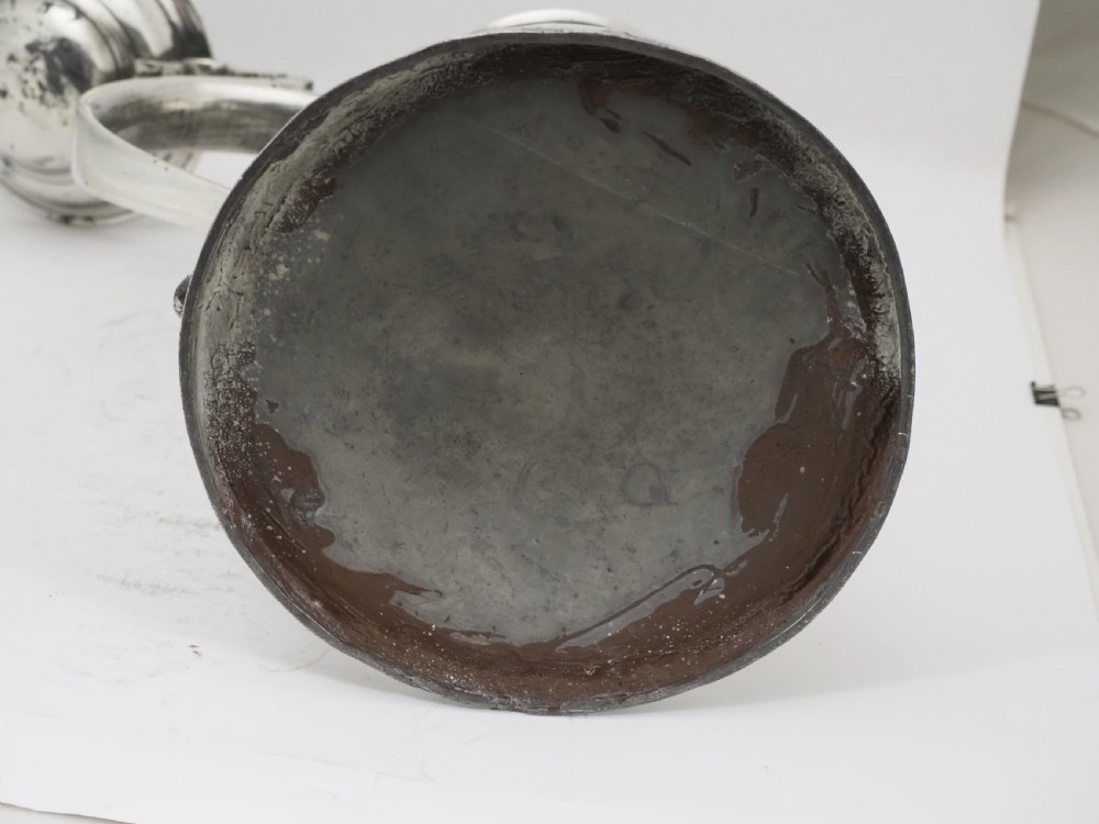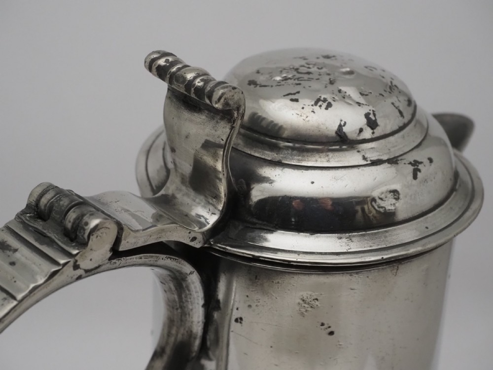 ANTIQUE IRISH PEWTER CHURCH FLAGON PROBABLY BY JOHN HEANEY OF DUBLIN, 1763 - 1807.