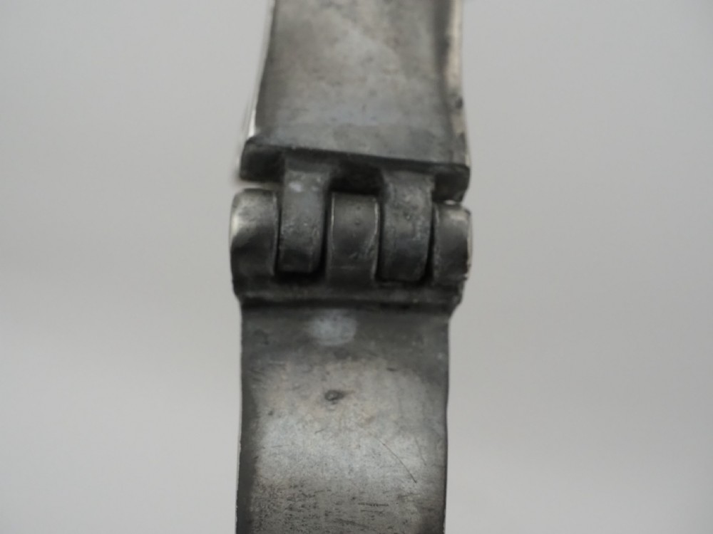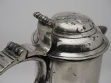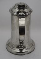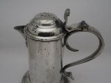 Description: Irish Half-gallon capacity church flagon of typical Dublin style, with a bold swan's neck handle, double-dome lid, reeded spout and reeded chairback thumbpiece, probably by John Heaney of Dublin who worked 1763 - 1807. These flagon were for communion use in Churches. Literature: See D. Hall, Types of Irish Pewter, In association with the National Museum of Ireland (2005), pp. 23 - 24, for further illustrated examples. This flagon is one of a pair, the other is stock number P-138b, if the pair are purchased I will discount the total price by 10%. Condition: Excellent condition with a polished silver grey finish and some small traces of light oxide. Repairs: There is an old 'waterproofing' seal to the underside base rim. Size: Height to top of thumbpiece: 11.50 in (29.50cm). Base diameter: 7.25in (18.4cm). Top diameter: 4.75in (12.00cm). Capacity: Approximately 1/2 gallon . Pewterer's reference number: Pewter Society: - PS4536. Cotterell: Old Pewter: Its Makers and Marks - OP2242. Stock number: P-138d. Shipping costs: UK: £15.00 Europe: £35.00 USA/Canada: £60.00 Other countries: Please ask. Please be aware that exports outside of the UK may incur local Tax and Duty, please check with your local Customs Office. Please view our extensive collection of antique carpets & rugs at www.knightsantiques.co.uk. If you would like to receive further details of new stock as it arrives then please send your email address to: simon@knightsantiques.co.uk and ask to be added to the new arrivals list. Internal Ref: P-138d