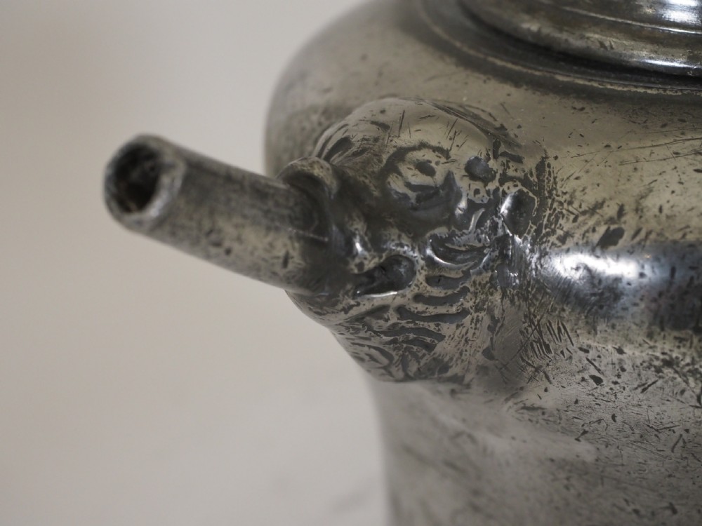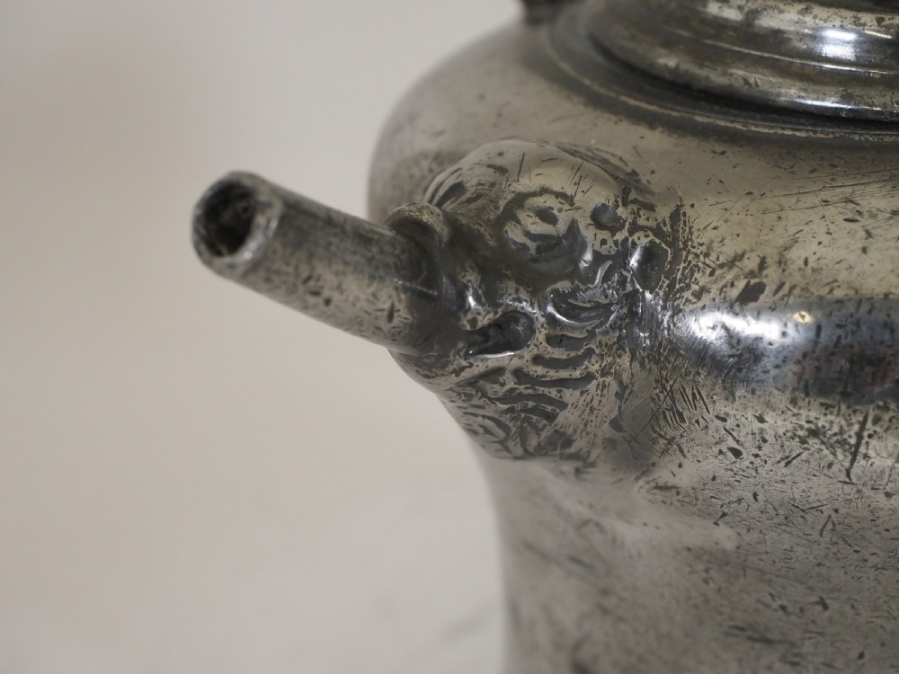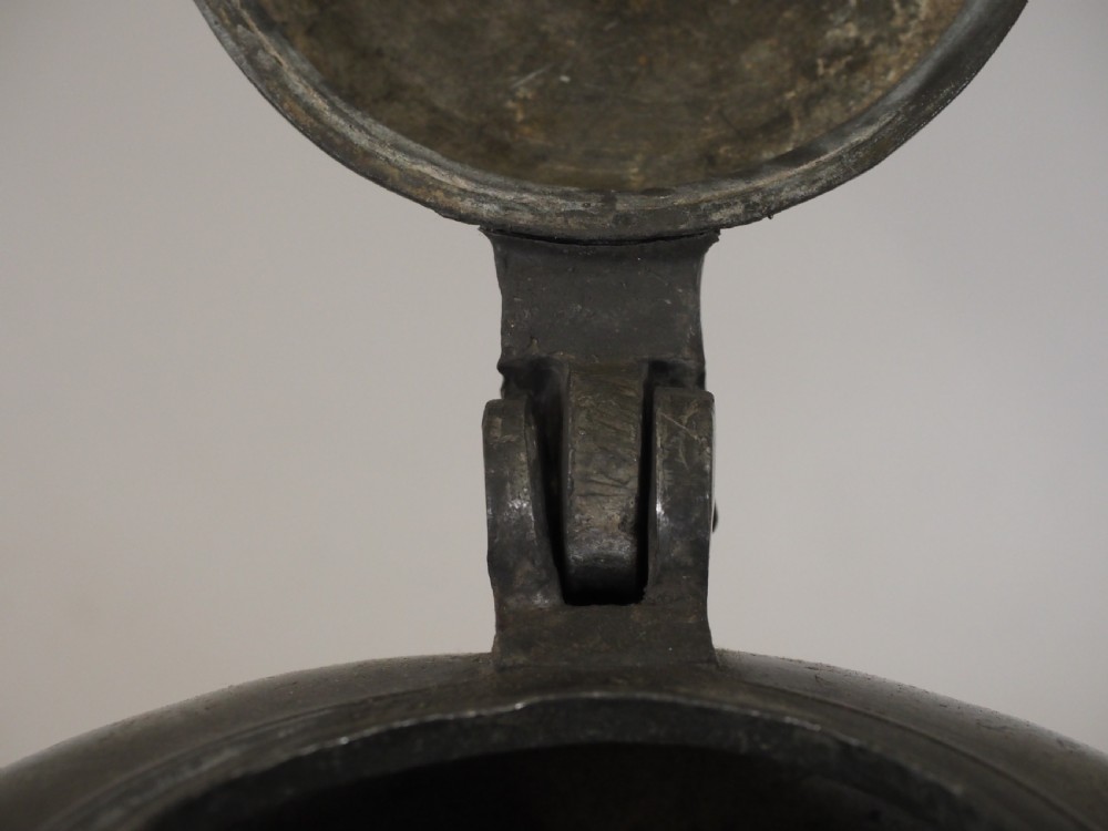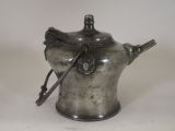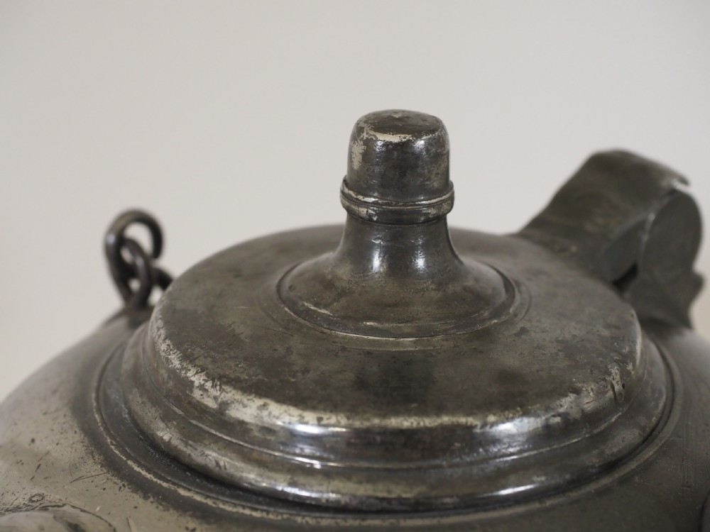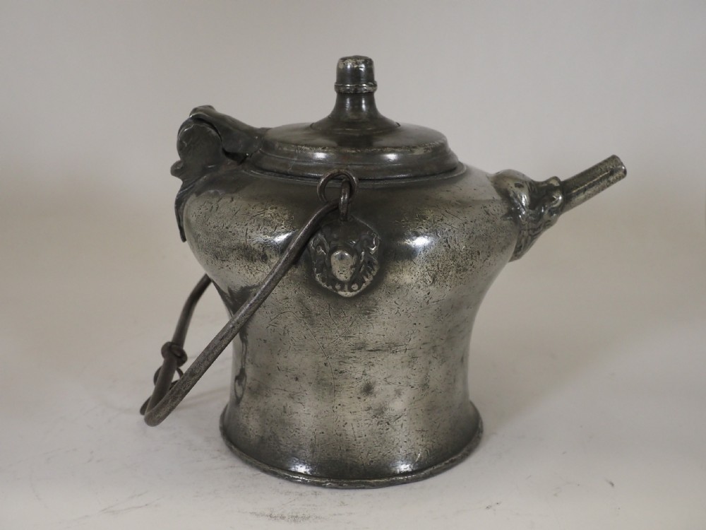 ANTIQUE SWISS PEWTER 'BIBERON' WATER DRINKING VESSEL, CIRCA 1730.