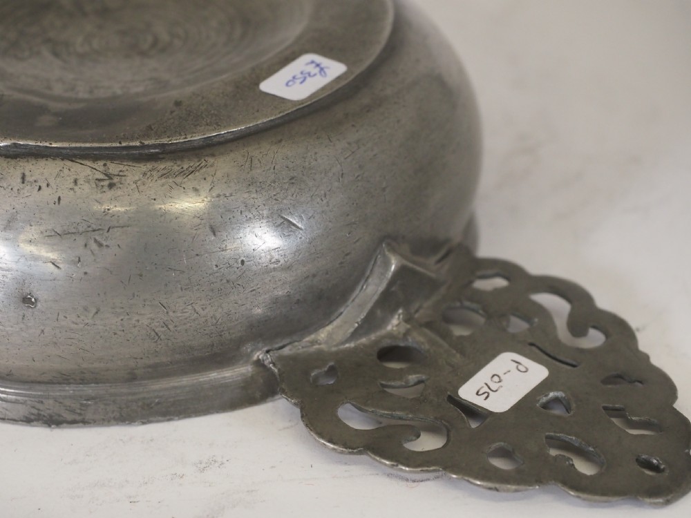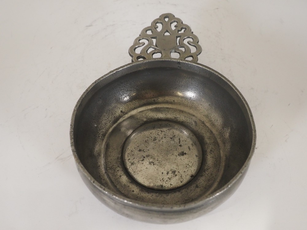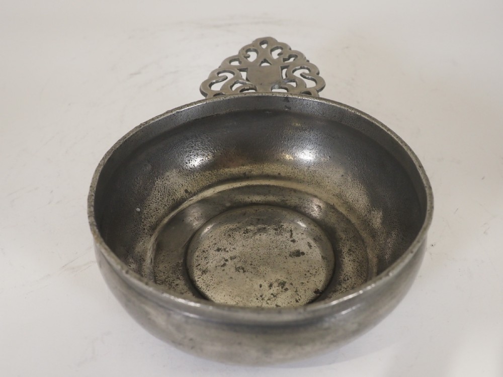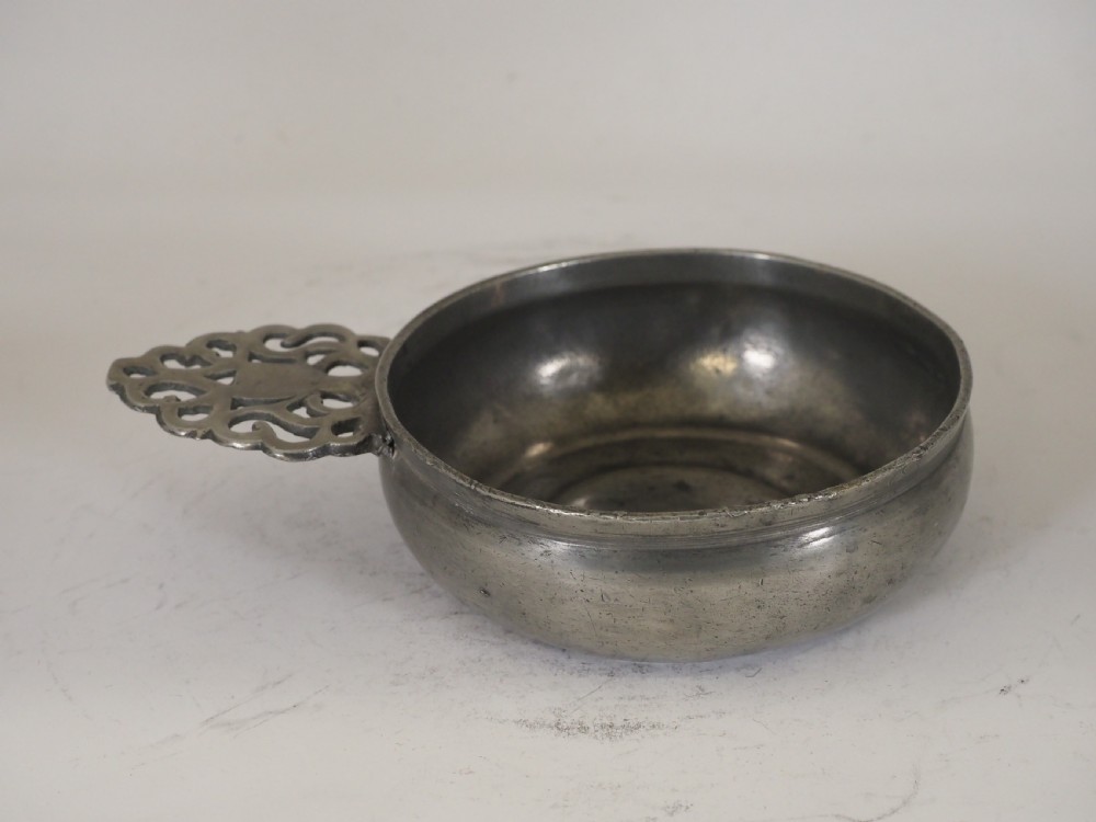 antique english pewter porringer of 16 floz capacity circa 1700