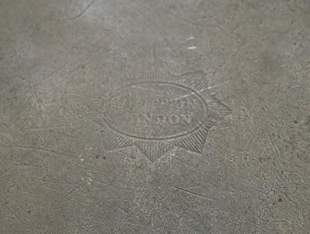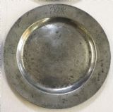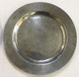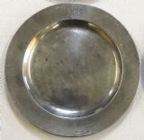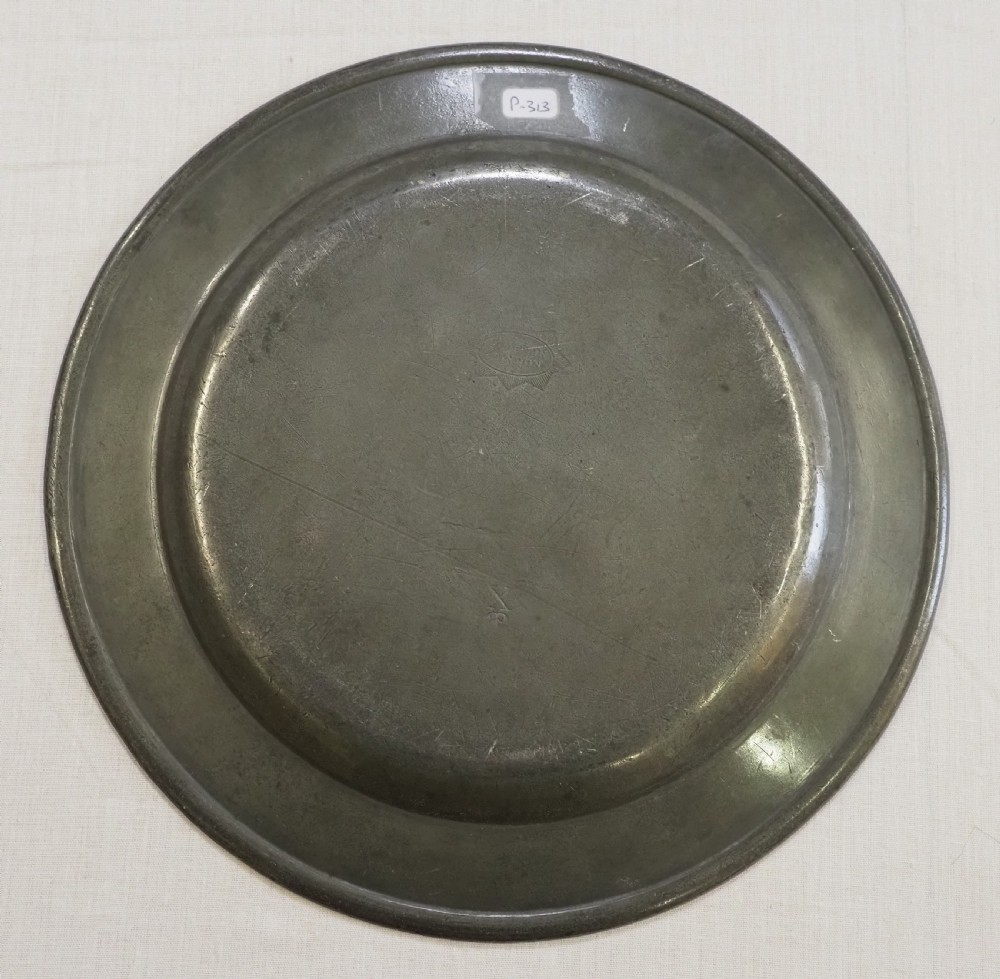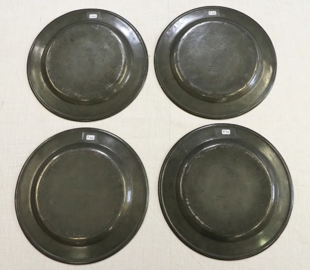 A SET OF FOUR ANTIQUE ENGLISH PEWTER PLATES BY T & H COMPTON 1814 - 1835.